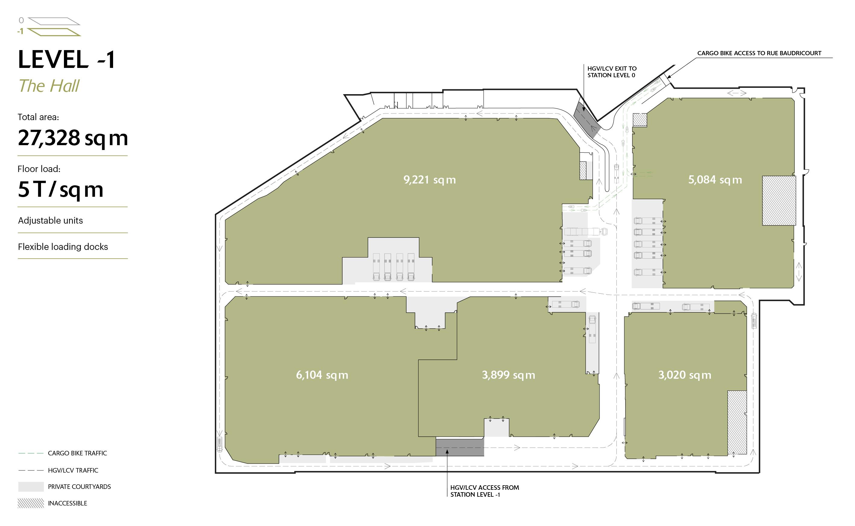 - 2 levels accessible to HGVs of all sizes, LCVs and cargo bikes