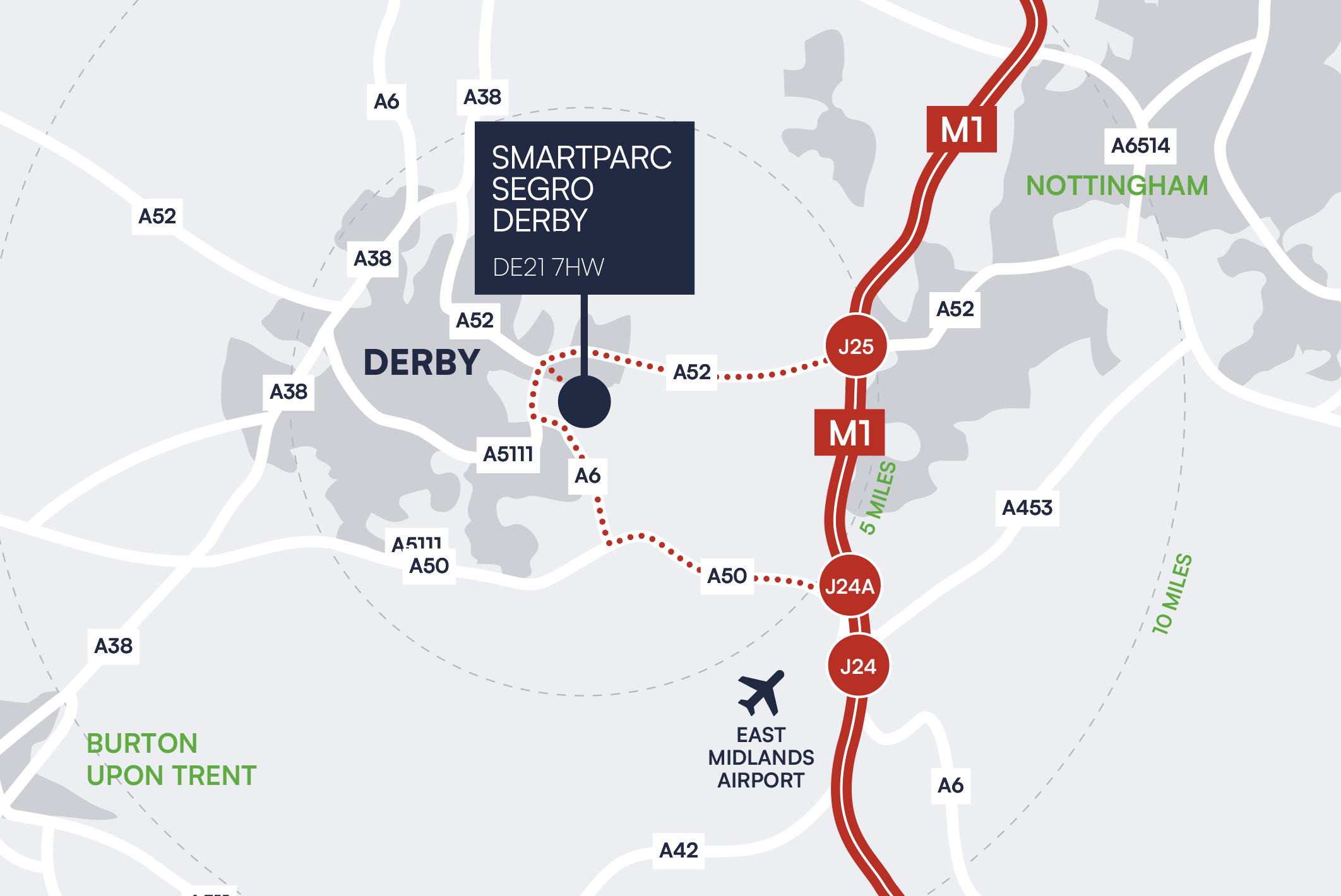 | SEGRO Logistics Park East Midlands Gateway (SLPEMG) | 10.2 miles |