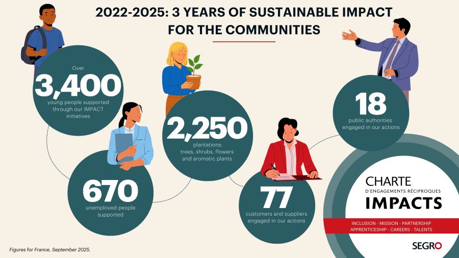 Launched in 2022 at SEGRO Parc des Petits Carreaux in Bonneuil-sur-Marne (94), the IMPACT Charter, initially a local project, has already produced concrete and lasting effects, with nearly 3,500 young people and 700 job seekers receiving support