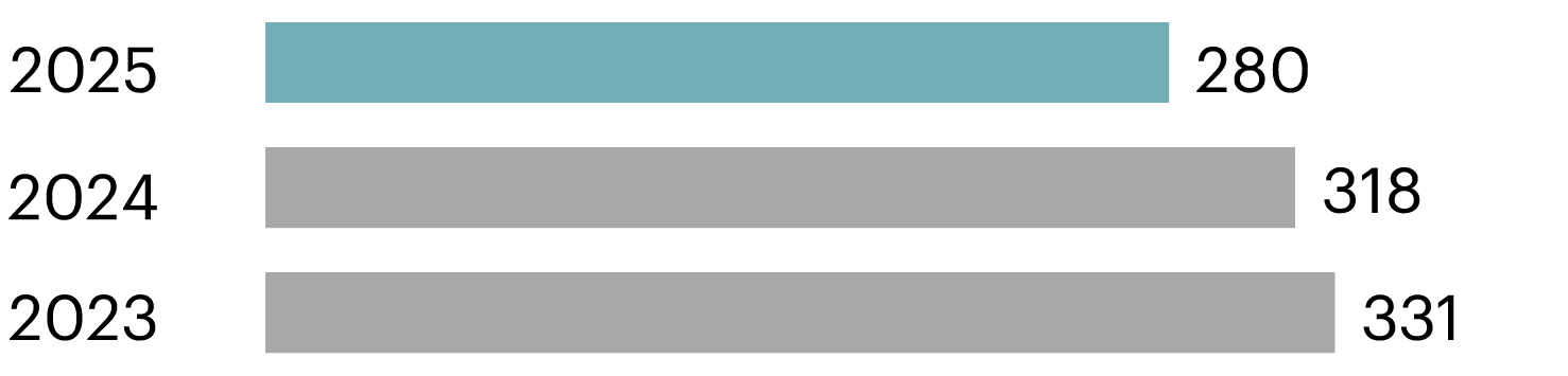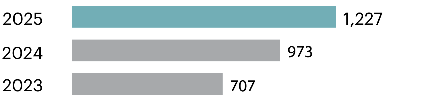 In 2025, 442 employees (95 per cent of the workforce) worked alongside 354 customers, suppliers, public sector partners and financial stakeholders to deliver a total of 1,227 volunteering days. This represented a 26 per cent increase in volunteering days from 2024 to 2025. 2023 note: employees only; other volunteering not measured.