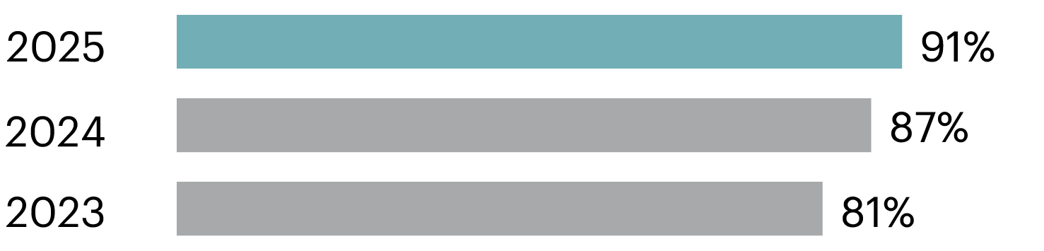 Under standard market lease terms we do not have automatic visibility of customer energy usage data. We recognise the importance of having good visibility of this data so we can accurately assess our Scope 3 emissions and help our customers to reduce their own carbon footprint as well as improving their energy efficiency. The visibility of our customers’ energy use improved to 91 per cent (2024: 87 per cent) of our total property footprint by area.