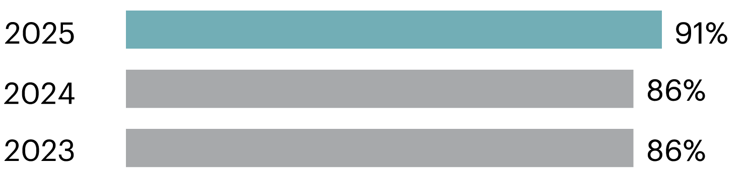 Satisfaction as an occupier of our buildings was rated as ‘good’ or ‘excellent’ by 91 per cent of the 294 customers who participated in 2025 (2024: 86 per cent). The continued high satisfaction rate reflects our focus on communication, being responsive and understanding the needs of our customers and is particularly pleasing given the cost pressures that some of them are under (including rental increases).